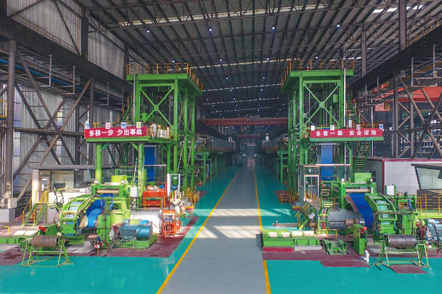 150m/min彩涂高端自動化生產(chǎn)線四條,涂輥壓力檢測,適時(shí)調(diào)整、底涂和面涂兩輥式涂頭可選用兩涂兩烘工藝;底漆和面漆濕膜厚度在線檢測、面涂采用“U”型雙涂頭機(jī);涂輥配置在線刮刀、涂料配置油漆恒溫系統(tǒng)。配置保護(hù)膜覆膜機(jī)、配置在線頻閃儀檢查臺;出口段自動分卷、自動穿帶、自動卷取和自動卸卷功能;卷取機(jī)配置EPC系統(tǒng),實(shí)現(xiàn)成品鋼卷的齊邊卷取;卷取機(jī)配置助卷器和無縫卷筒,防止成品卷內(nèi)圈壓痕產(chǎn)生。